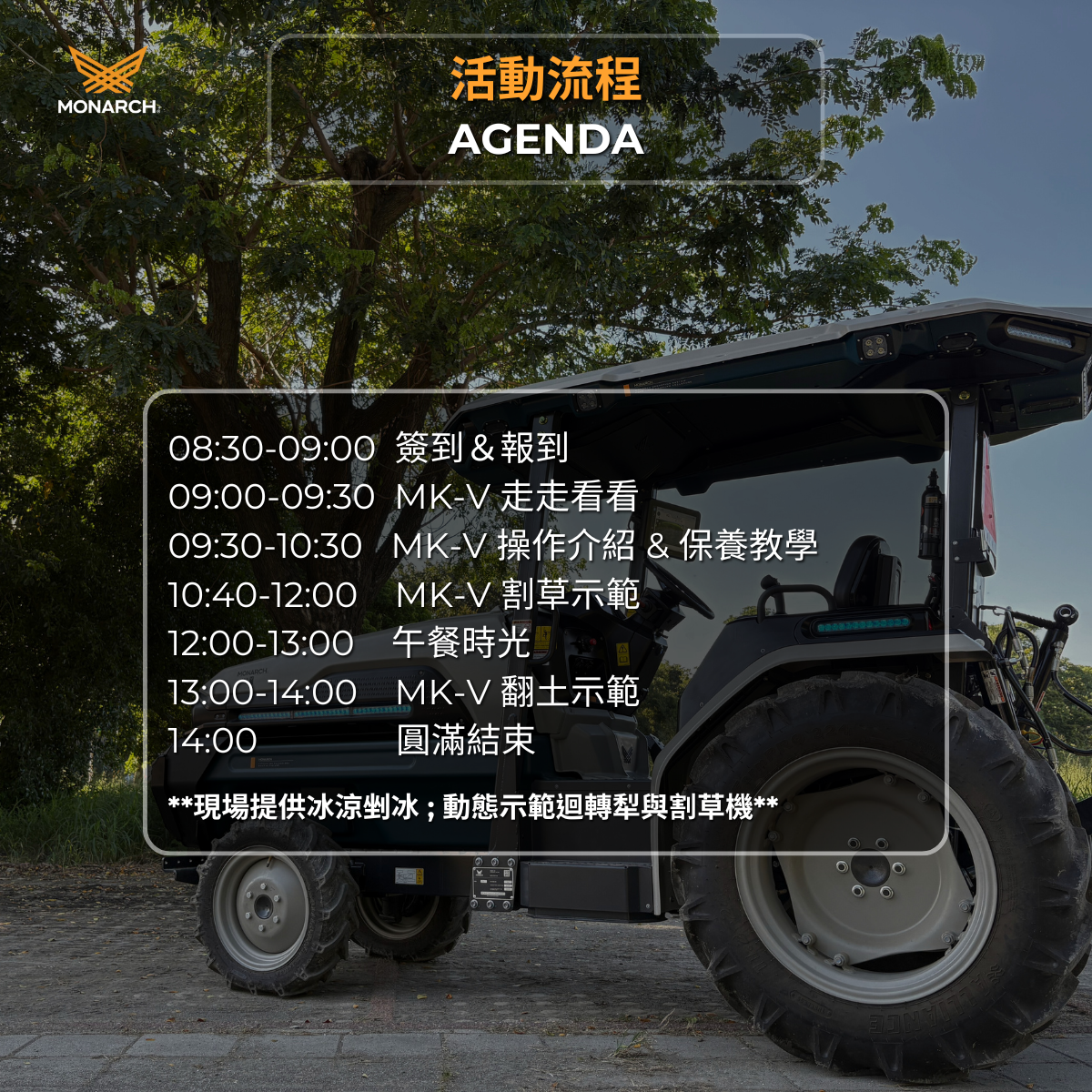 自創立以來,Monarch的願景就是要讓機械自動化、數位化,並邁向零碳排,服務於支撐社會基礎建設與糧食供應的艱困產業。這個大膽的想法透過努力、堅持,以及持續解決田間、畜舍與工地上的真實挑戰,逐步化為現實。2022年,Monarch推出MK-V,全球唯一100%電動、具備自動駕駛能力的智慧曳引機,達成重大里程碑。如今,隨著MonarchOne的正式發表,Monarch在雄心勃勃的旅程中再度邁向新高度,對整個Monarch社群來說,這是一個值得驕傲、令人振奮的時刻。