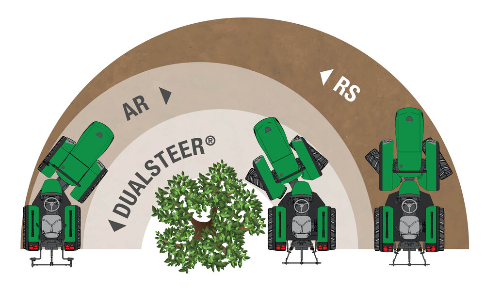 Dualsteer® 技術結合了中軸鉸接與前輪轉向,提供市場唯一的雙轉向系統。