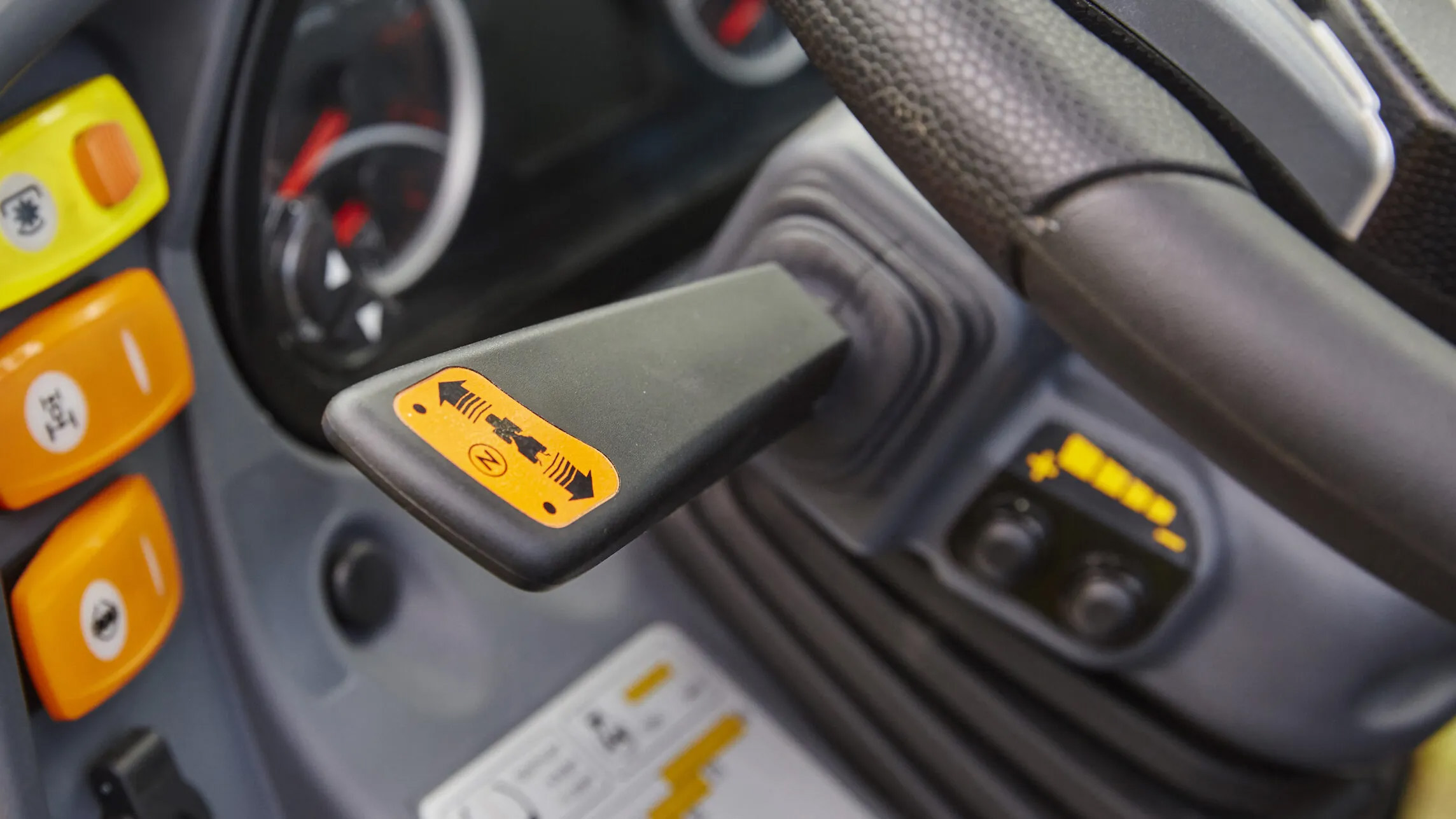 設置於方向盤左側的前進後退桿,讓駕駛無需使用離合器踏板,也不用將雙手離開方向盤,即可輕鬆切換行駛方向,並始終保持對曳引機的全面控制。