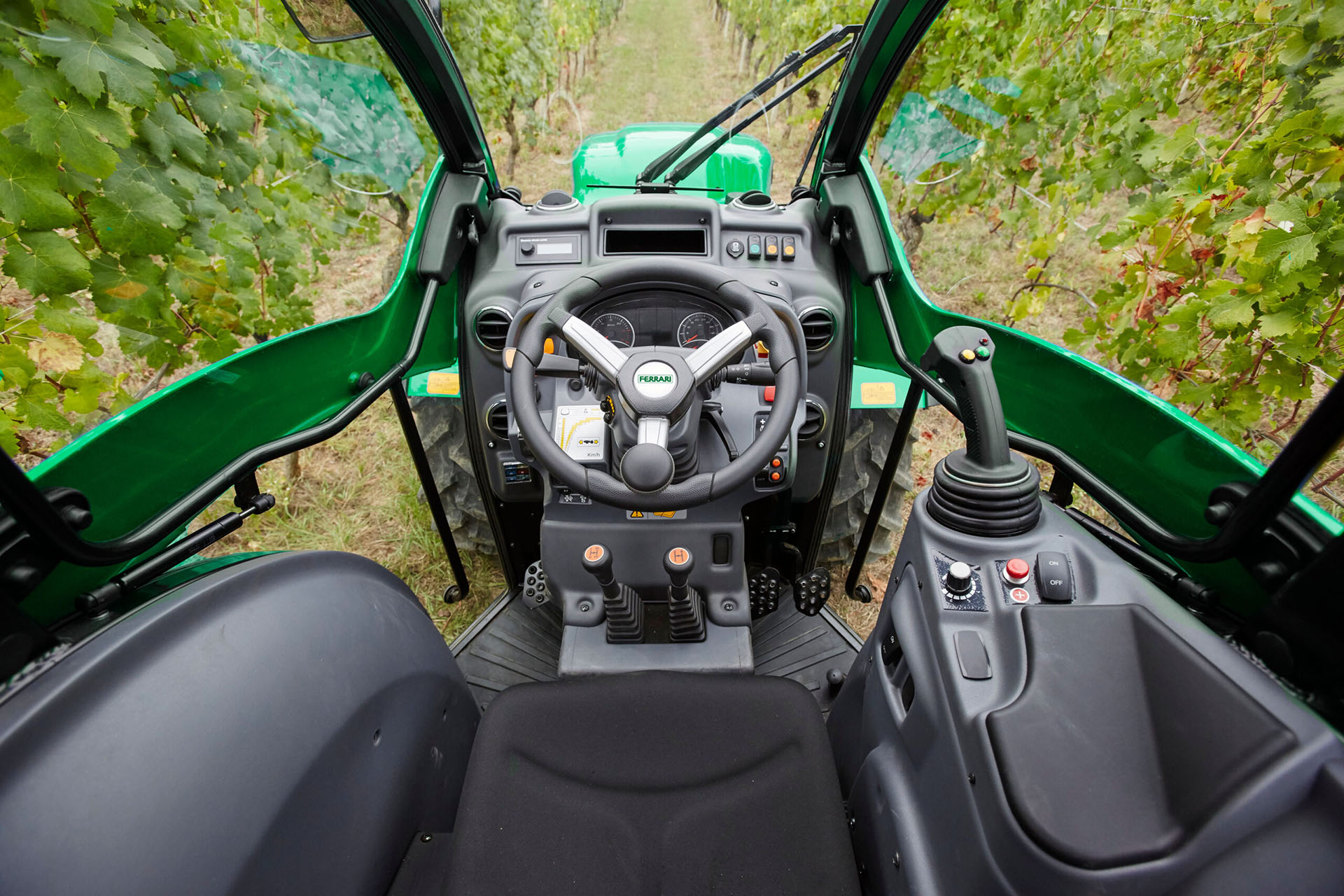 強壯的油壓系統與多功能電控操作桿,可以完美適用於台灣的果園、葡萄園、茶園及溫網室作業。
