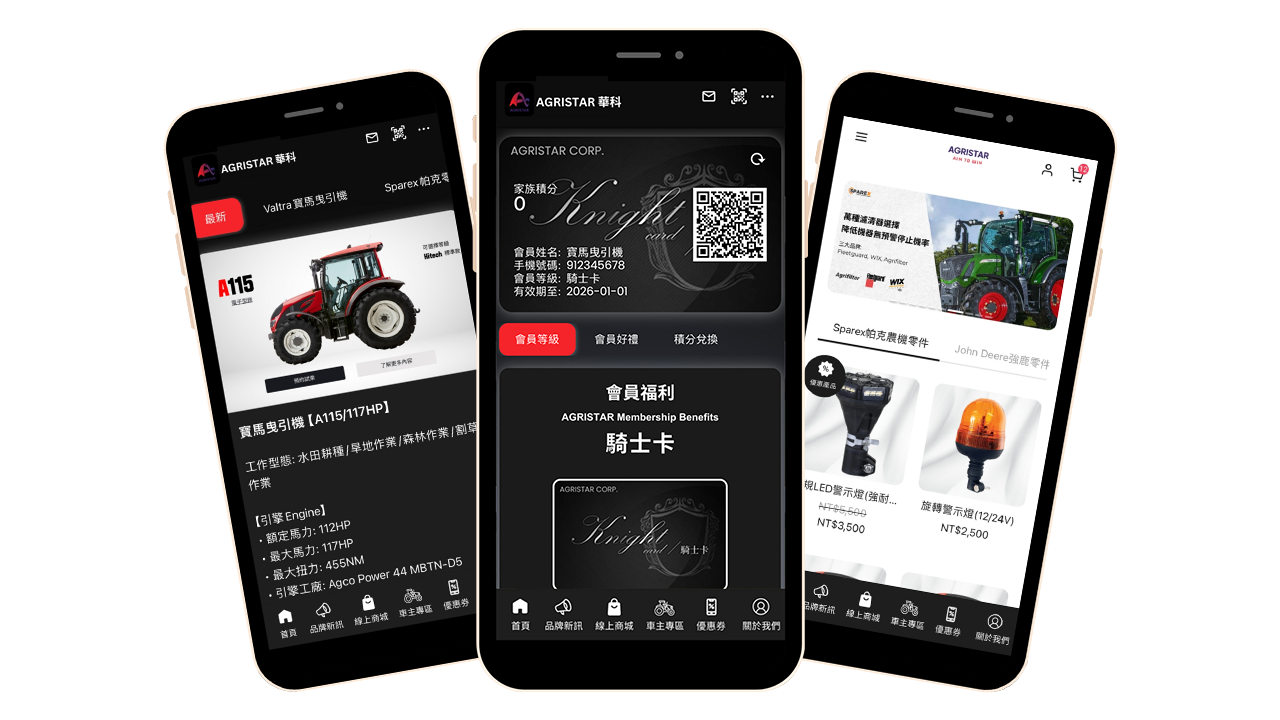 AGRISTAR APP是全台灣第一個為跨國農機品牌打造的專屬APP。