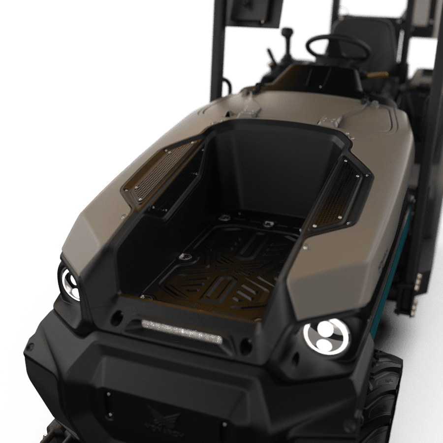 額定功率: 30kW(≈40HP) 最大功率: 52kW(≈70HP) 完全充電: 6小時(0%-100%) 電池續航: 14小時(視作業環境而定) PTO轉速: 540 rpm 舉升力量: 750KG 輪胎規格: 4.3×16.00-20(後輪) + 27.8.5-105(前輪)