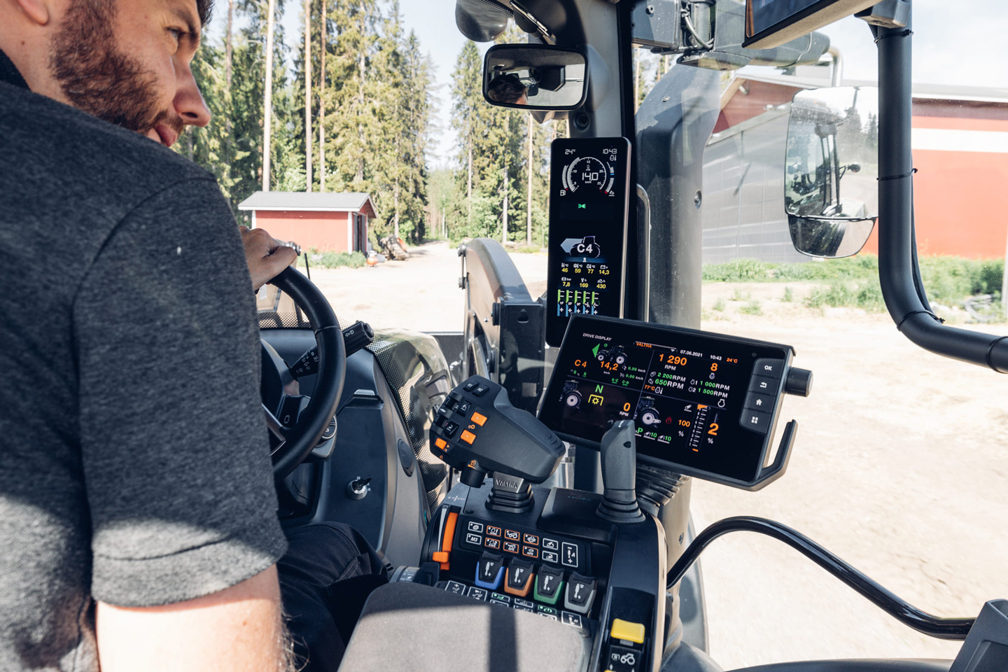北歐質感A柱顯示幕,清楚呈現駕駛所需的曳引機資訊。您只需要簡單透過旋鈕和兩個按鈕來設定曳引機的工作性能。
